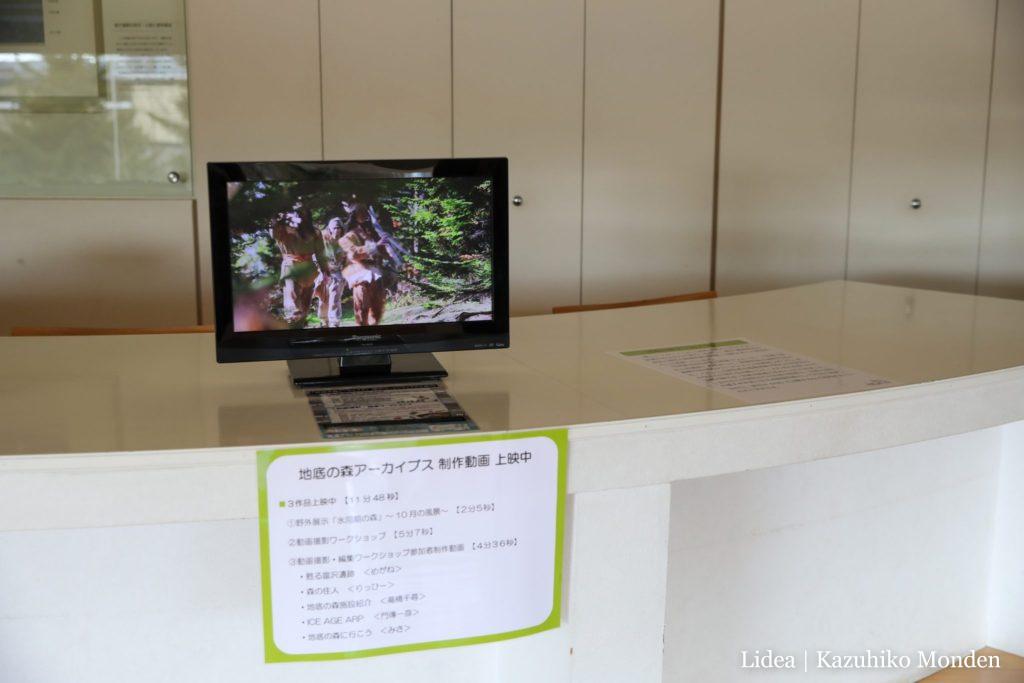 で、いま一階の広間に、ささやかながら作っていた映像が展示されてます。氷河期の森に現れる狩人や、映像編集ワークショップの参加者作品、写真ワークショップの写真をまとめた映像などを展示しています。