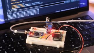 制作仕事の傍ら、センサーに反応する音の出る装置とプログラムを開発中。遅くとも来秋には色々と役立てる計画。