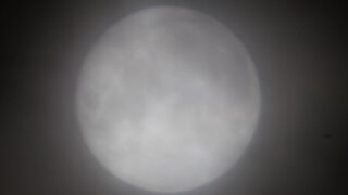 すっごい久し振りにお手軽望遠鏡をセットして、寝床で月見。だけど雲が多くてボヤボヤ。 / v ...