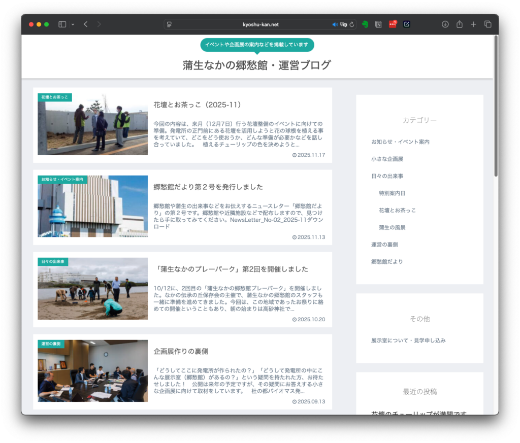 Webサイト作成・運用:蒲生なかの郷愁館・運営ブログ
